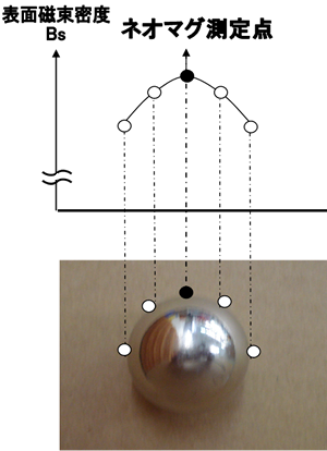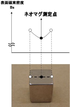 ネオマグショップで表示している高さ方向着磁の表面磁束密度は、この中央部における最小値を測定または計算したものです。