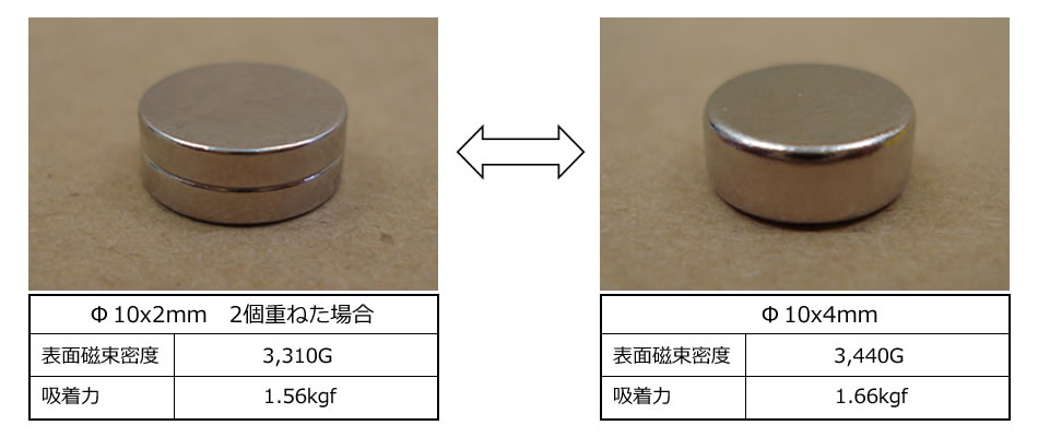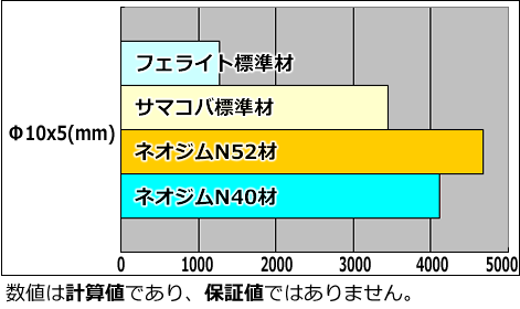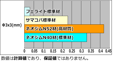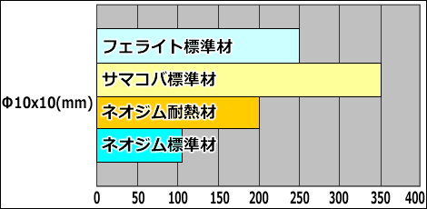 この比較表は、同寸法・同着磁方向での比較となります。 (ラバー磁石は除く)