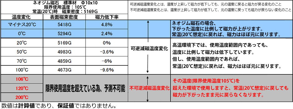 | 材質記号 | 磁束密度 | 吸着力 | 限界使用温度 | |