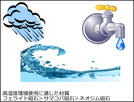 初めて磁石をご使用になる場合、使用環境が常温・常湿であれば、ネオジム磁石またはフェライト磁石から選定することをおすすめします。