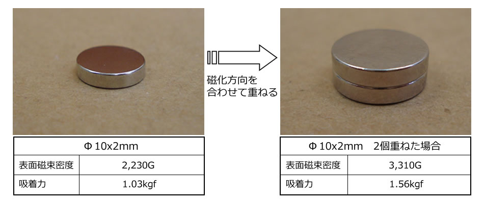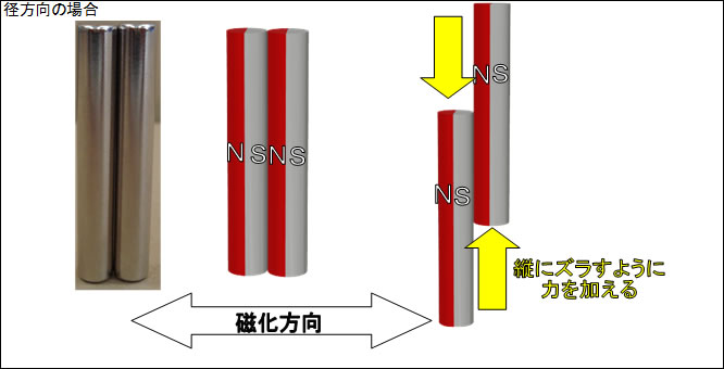 直径方向にもっとも強く磁力が出ており、もっとも強く吸着する方向になります。