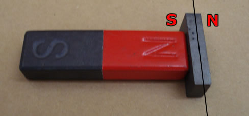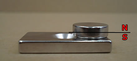 ※画像では完全に吸着させていますが、吸着させずに磁石同士を近づけ、引き合うか、反発するかで判別することも可能です。