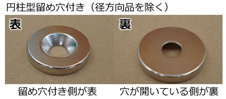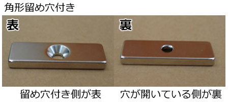 留め穴付き商品は、留め穴の付いている側(表)は原則N極になるようにしてあります。