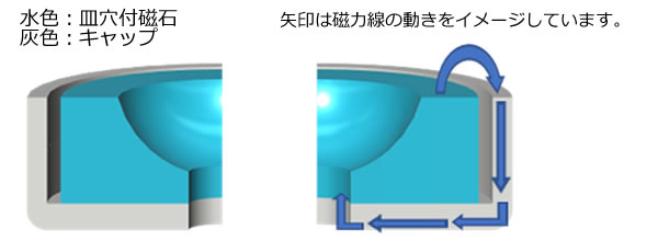 磁力はキャップの外側に出にくくなっているだけです。