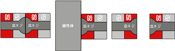 磁石はその性質上、同極(N極N極、S極S極)では反発し、 異極の場合、吸着します。